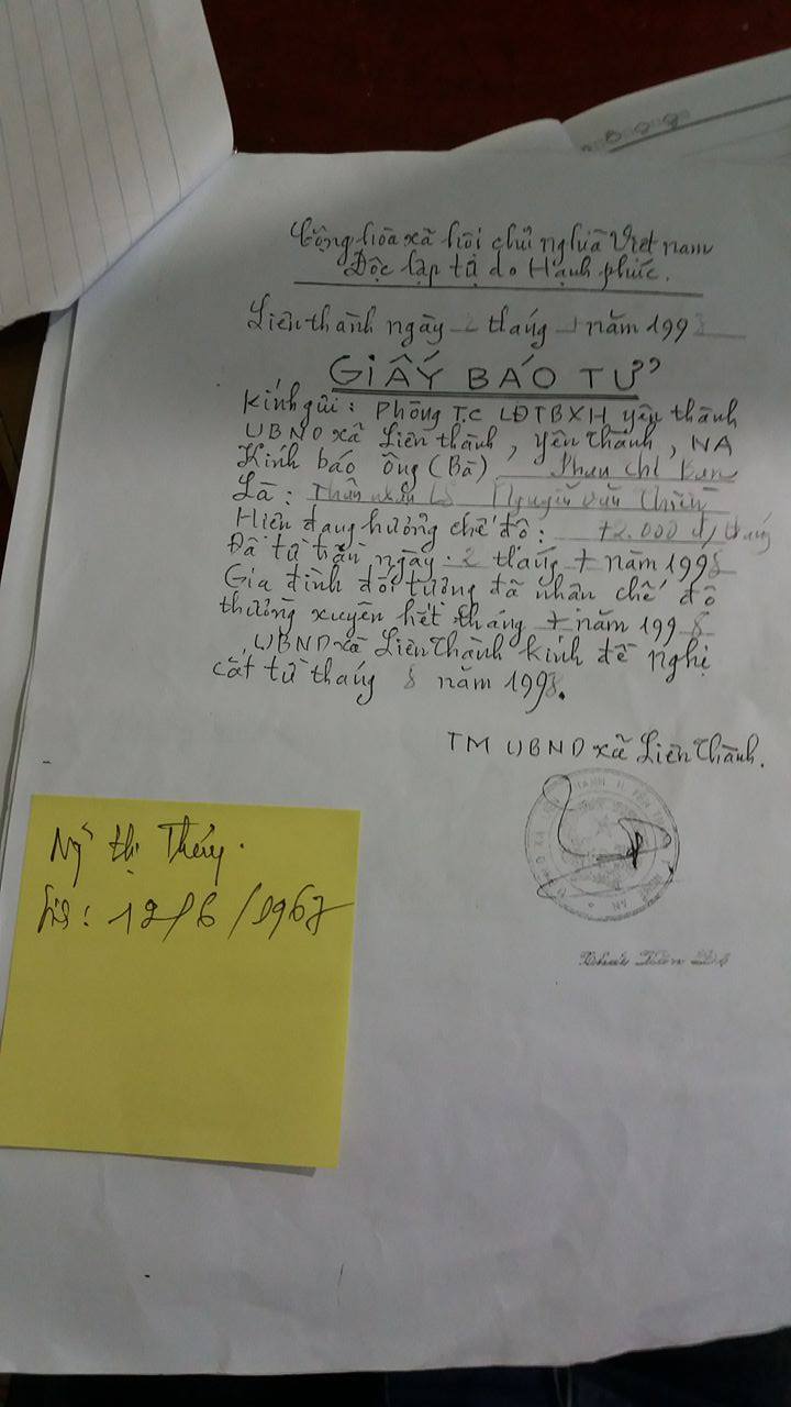 Trước sự việc này, ông Thái Văn Độ, nguyên Chủ tịch UBND xã Liên Thành, hiện là cán bộ chính sách xã Liên Thành cũng hết sức ngỡ ngàng về sự việc và cũng không hiểu tại sao mình lại ký vào giấy báo thôi cấp chế độ và giấy báo tử cụ Phan Thị Ban năm xưa.