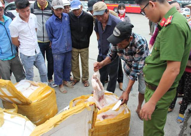 - 5 thùng xốp chứa gần 500kg thịt heo sữa đã bốc mùi hôi thối bị lực lượng chức năng bắt giữ khi đang vận chuyển vào Quảng Nam tiêu thụ.