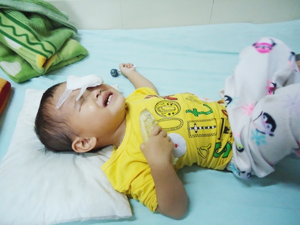 Khi ấy, mắt phải bé bắt buộc phải bị khoét bỏ. Vì là người dân tộc và nghèo khó nên gia đình đã không theo điều trị hoá chất và laser khối u nhỏ mắt bên trái, nên đáng nhẽ ra, mắt trái của em được cứu. Nhưng thật xót xa khi em quay lại tái khám thì khối u mắt bên trái đã phát triển, phá hủy toàn bộ con mắt và đang xâm lấn ra bên ngoài. Tuy nhiên, vẫn còn may mắn là chưa di căn vào não. Nếu điều trị tích cực, có thể chỉ giữ được tính mạng còn con mắt thì không thể.